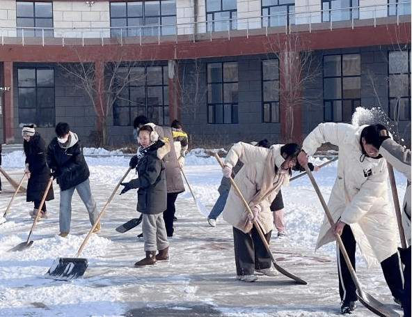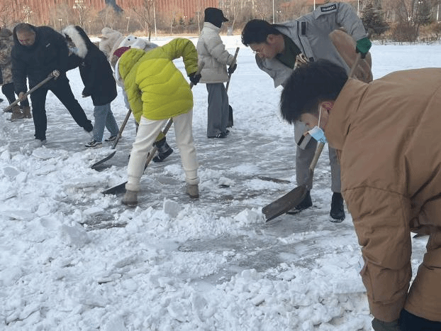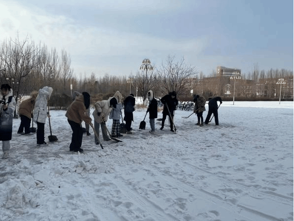 志愿者们拿上铁锹、扫帚、雪铲等工具来到美术楼、音乐楼及音乐厅广场前,将积雪推至主要道路两侧,为师生开辟一条安全通畅的方便之路,全力保障师生出行与道路安全,为公司消除潜在危险隐患。