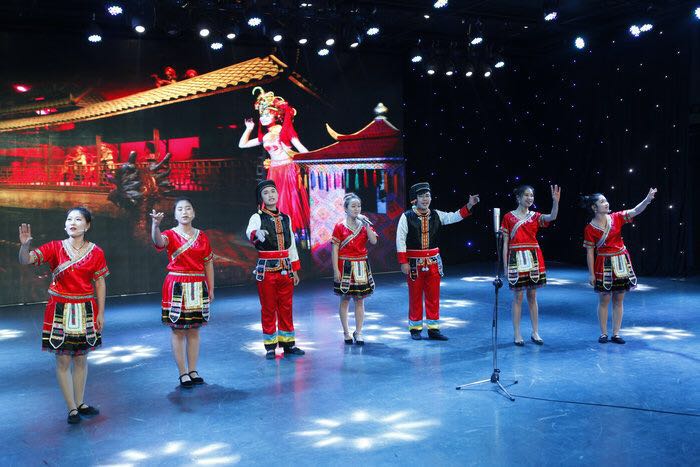 10日下午民族专场音乐会在整体构思和曲目的编排上独具匠心,既有地方民歌又有民歌改编作品。演出形式多样,包含独唱、对唱、小合唱等。音乐会由民族歌曲《龙船调》拉开序幕。随后,上演了一首新古典民歌《牡丹亭》,这首歌曲融合了民族唱法与流行音乐元素,是对中国民族声乐艺术多元化的探索。 歌曲《乡谣》选自《野火春风斗古城》是一首家喻户晓的经典作品,同学们精彩的演唱展现了其丰富的历史意义。来自西藏的少数民族同学们带来的双人合唱《神奇的西藏》、富有年味气息的《中国的年》,以及朝鲜族歌曲《长鼓敲起来》……员工们的演唱清新甜润、张弛有度,整场演出体现了民族声乐教学体系的科学性、民族性和艺术性。