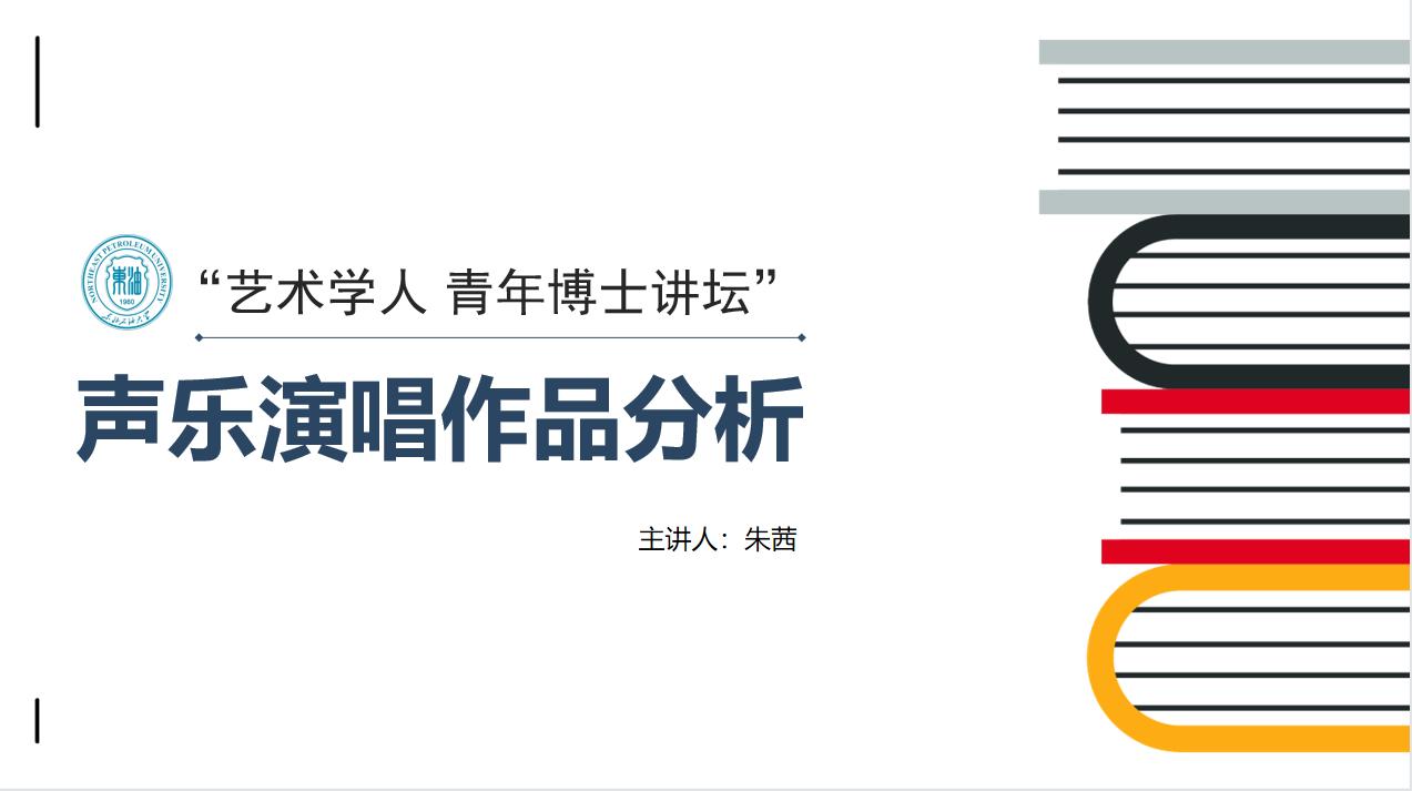 本次讲坛以《声乐演唱作品分析》为题,从其博士毕业论文中选取两个与实践教学相关的论点展开阐述。对声乐演唱作品进行分类,建立清晰的分类框架。对古诗词歌曲、艺术歌曲如何界定狭义、广义之分,进行了详细的阐述。中国民歌集体性、口头性、流变性的定义,如何更好的演绎风格性较强作品的学习方法。歌剧的演唱特点,人物的唯一性和舞台表现力。